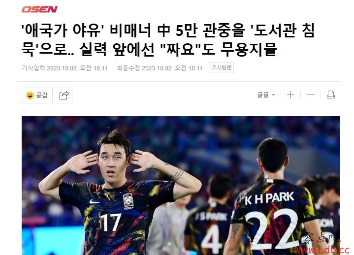 韩媒:中国球迷嘘韩国国歌没一点礼貌 在实力面前五万人嘘声也没用