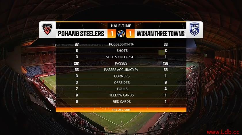 零点吧足球10月04日讯 亚冠J组第2轮,武汉三镇vs浦项制铁,上半场比赛结束,武汉三镇与浦项制铁战成1-1平,以下为半场数据。