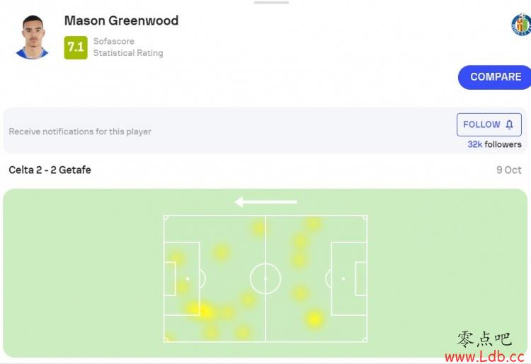 零点吧足球10月9日讯 赫塔费2-2塞尔塔,格林伍德收获西甲首球,球员本场重点数据如下: