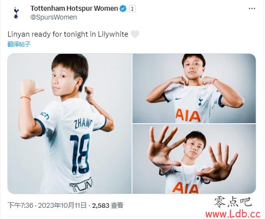 赛前热刺在社媒中晒出了张琳艳的照片,并配文:张琳艳为今晚的比赛做好了准备