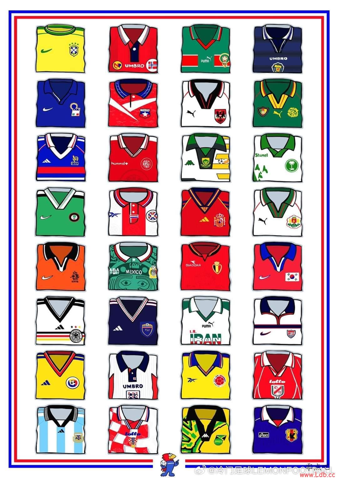 时光机丨98世界杯那些球衣,你印象最深刻的是?