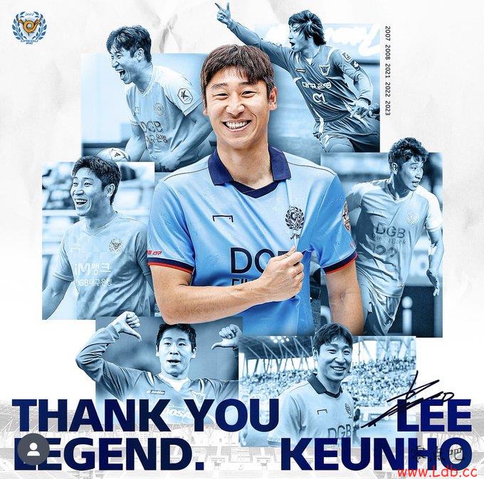 零点吧足球10月16日讯 大邱FC官方消息,目前效力于韩国大邱FC俱乐部的38岁前亚洲足球先生李根镐将在赛季末退役。