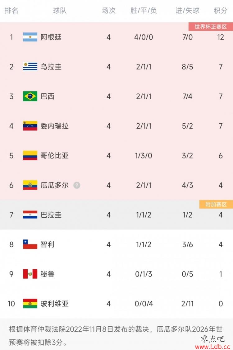 世界排名第22位的秘鲁前4场南美世预赛战绩1平3负,未进1球,丢掉5球,目前排名积分榜第9位。