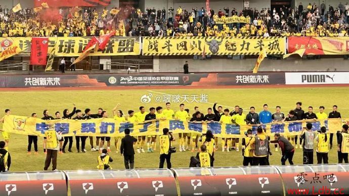 零点吧足球10月18日讯 据博主“啵啵天天酱”消息,四川九牛全队赛后拉横幅庆祝球队冲超成功。