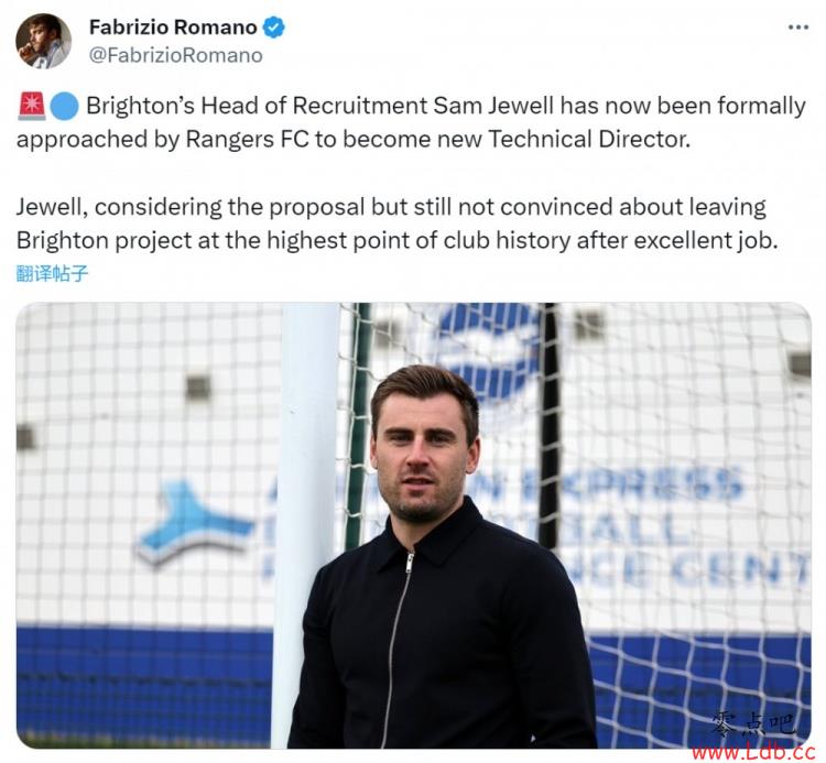 零点吧足球10月18日讯 据知名记者罗马诺透露,格拉斯哥流浪者俱乐部有意聘请布莱顿引援主管,让他担任俱乐部的技术总监。