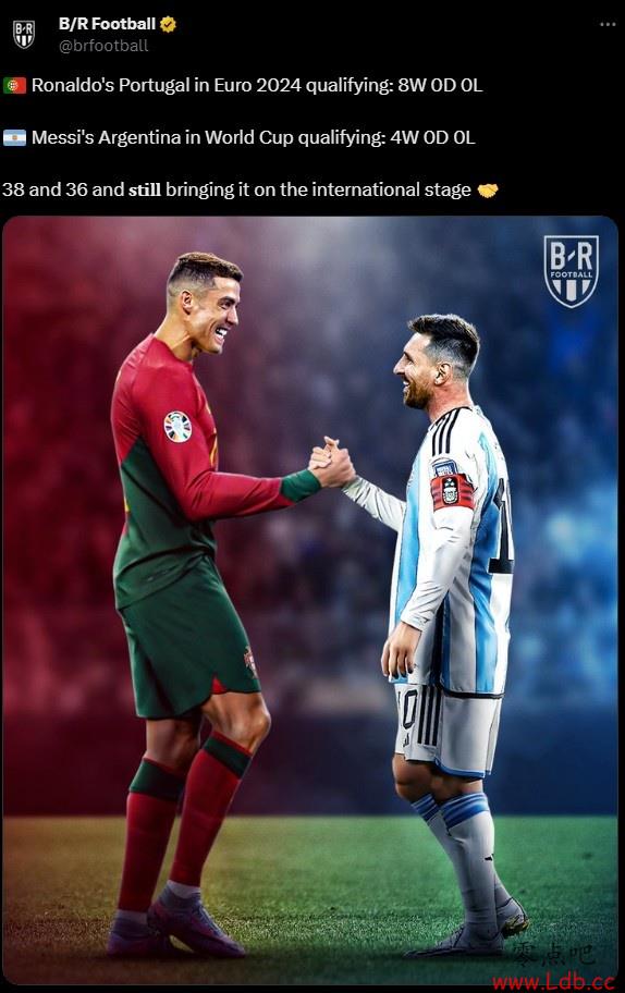 零点吧足球10月19日讯 露天看台今天晒出海报,表示36岁的梅西和38岁的C罗仍在国家队层面上继续战斗。