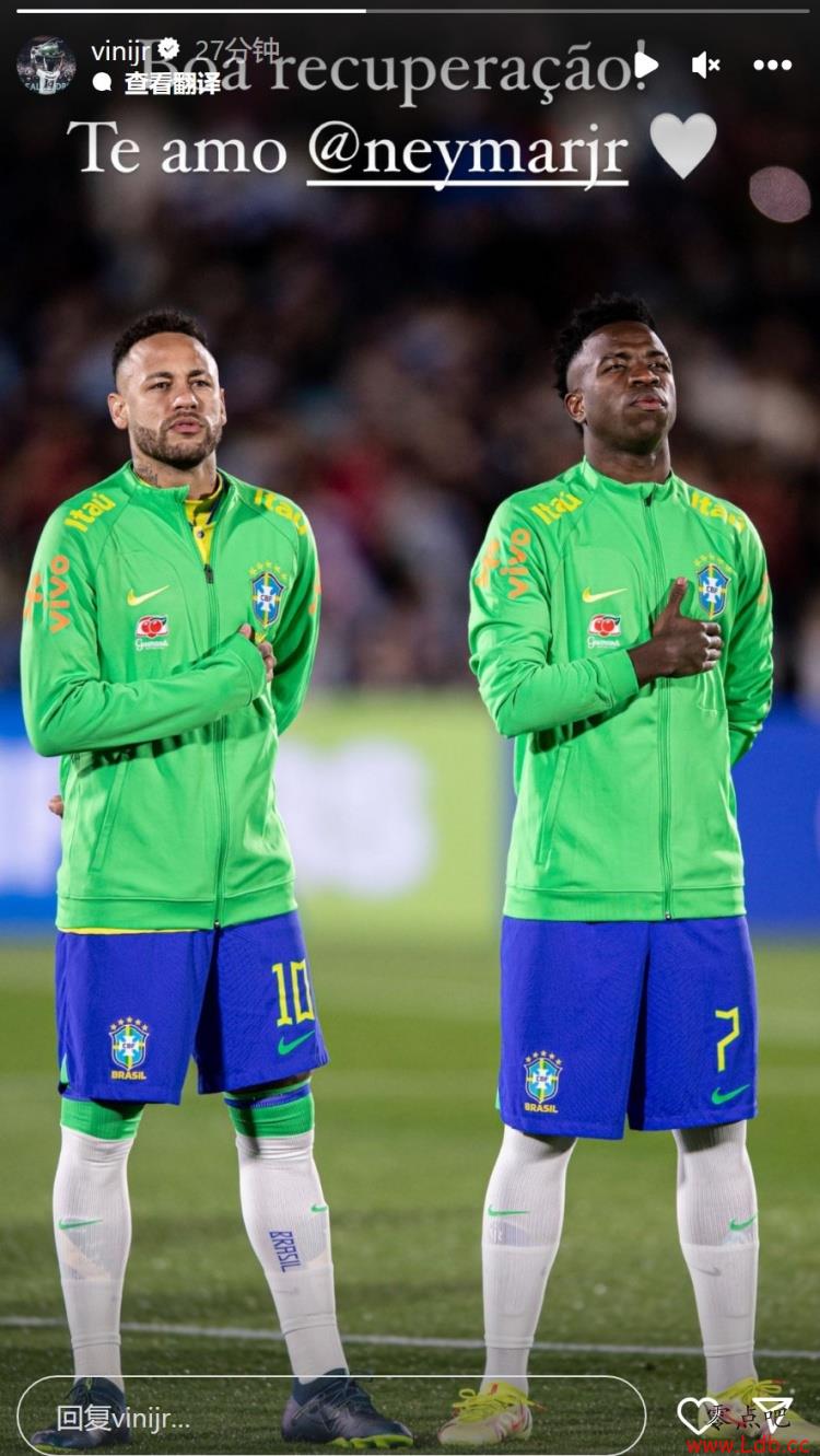 内马尔在巴西对阵乌拉圭的世预赛中受伤,将接受手术,国家队队友维尼修斯在社交媒体上晒出与内马尔的合照,并写道:“祝顺利康复!爱你,内马尔。”