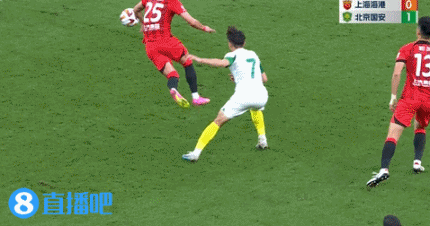 零点吧足球10月20日讯 北京国安与上海海港的比赛中,于大宝与对手对抗时犯规被出示黄牌。