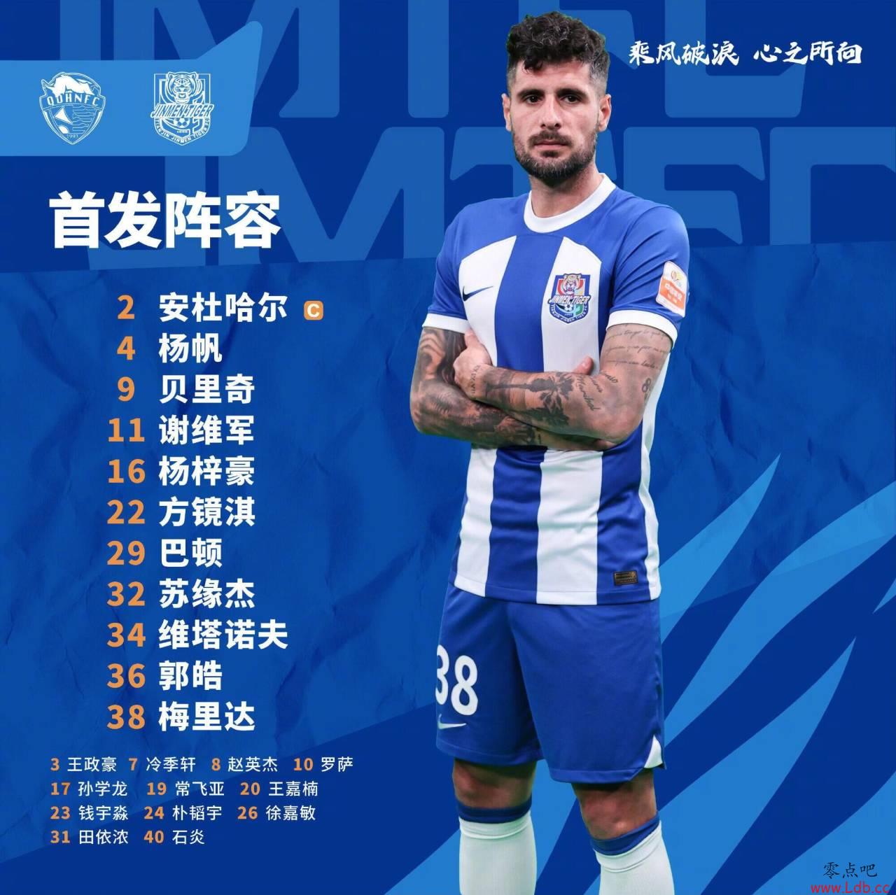 青岛海牛vs津门虎首发:冯劲先发,谢维军、巴顿出战