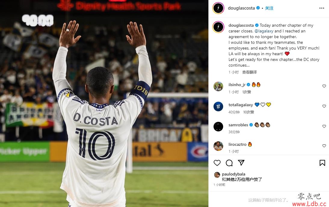 自宣离队!道格拉斯-科斯塔社媒证实与洛杉矶银河协商解约