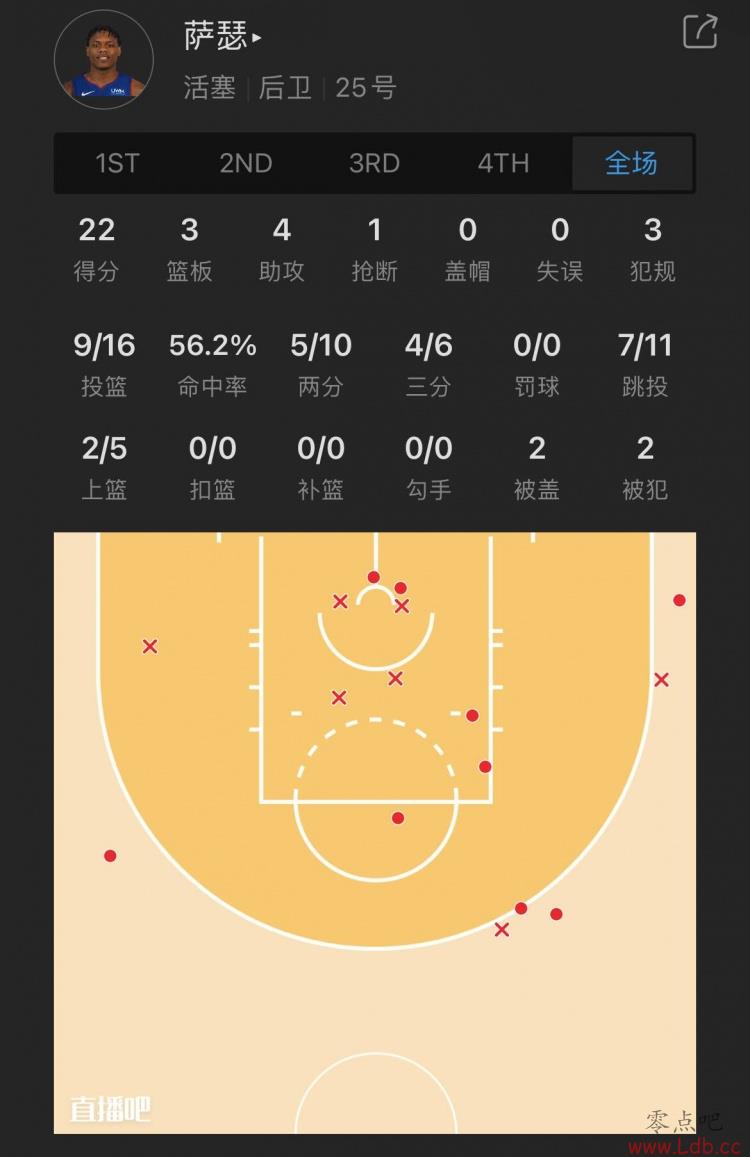 活塞25号秀 萨瑟 出战29分钟