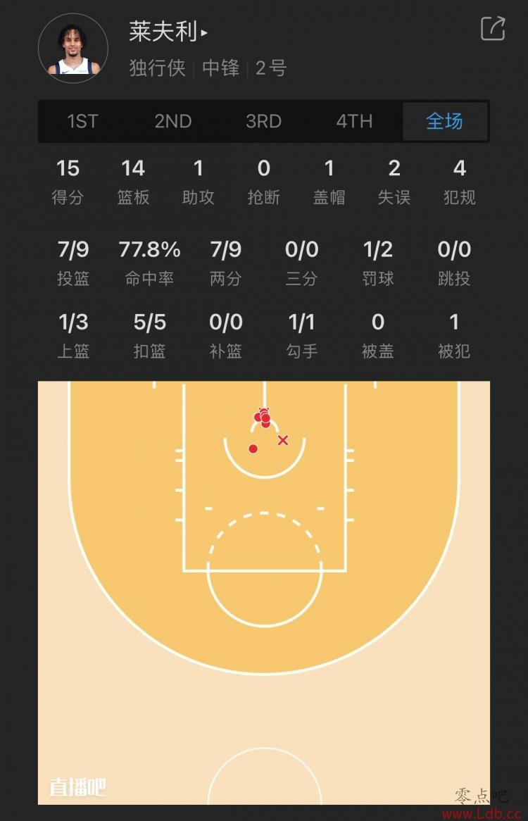 独行侠12号秀 莱夫利 出战32分钟