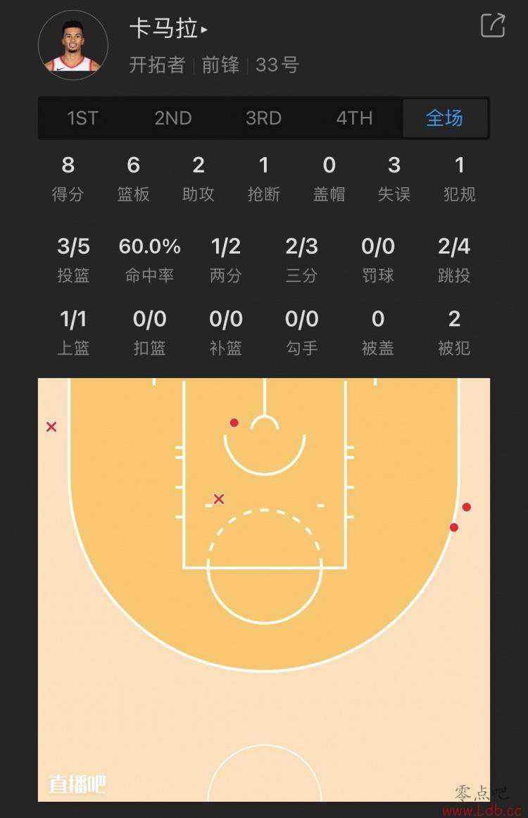开拓者52号秀 卡马拉 出战24分钟