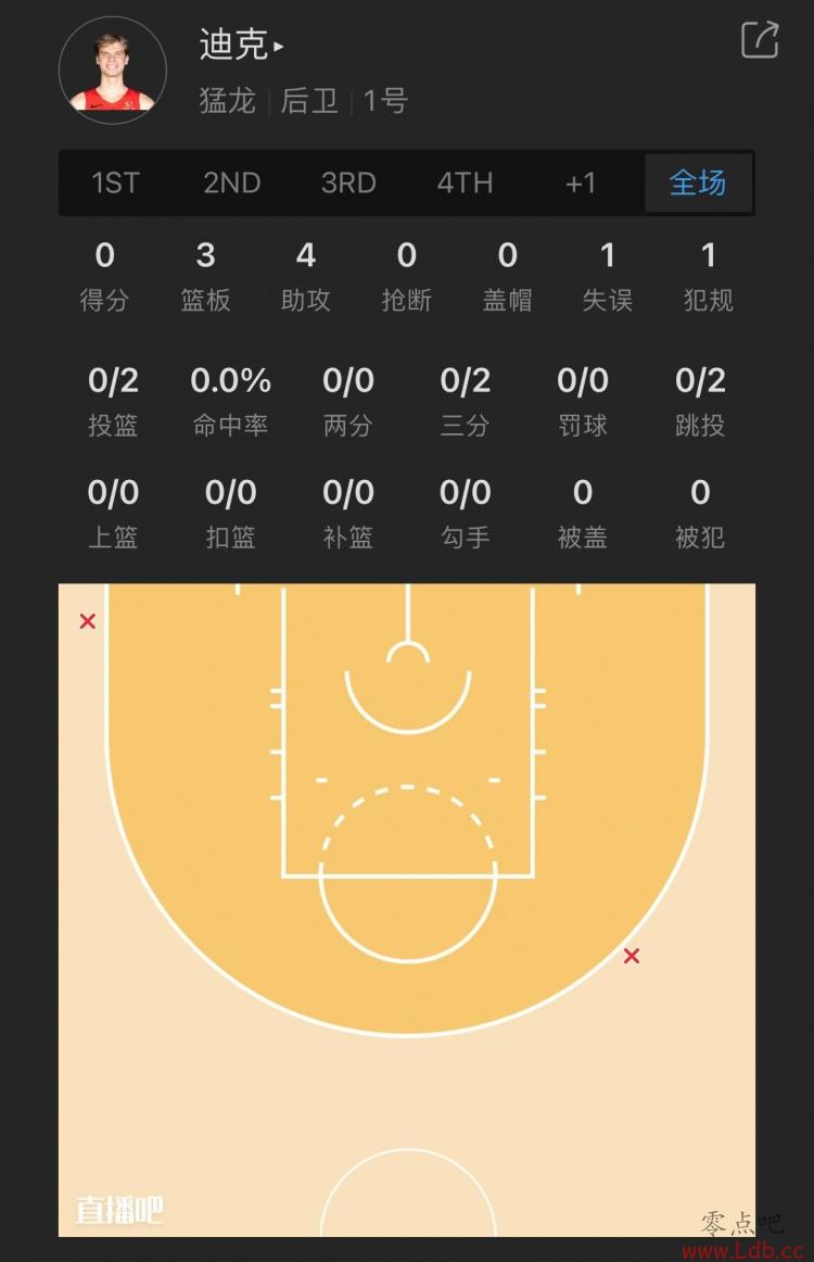 猛龙13号秀 迪克 出战14分钟