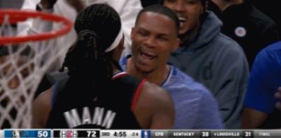 激情!曼恩追身大帽约什-格林 威少从替补席起身与其撞胸庆祝!