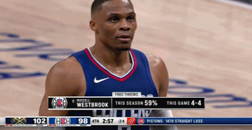 威少关键罚球两罚不中 其中一球几乎三不沾