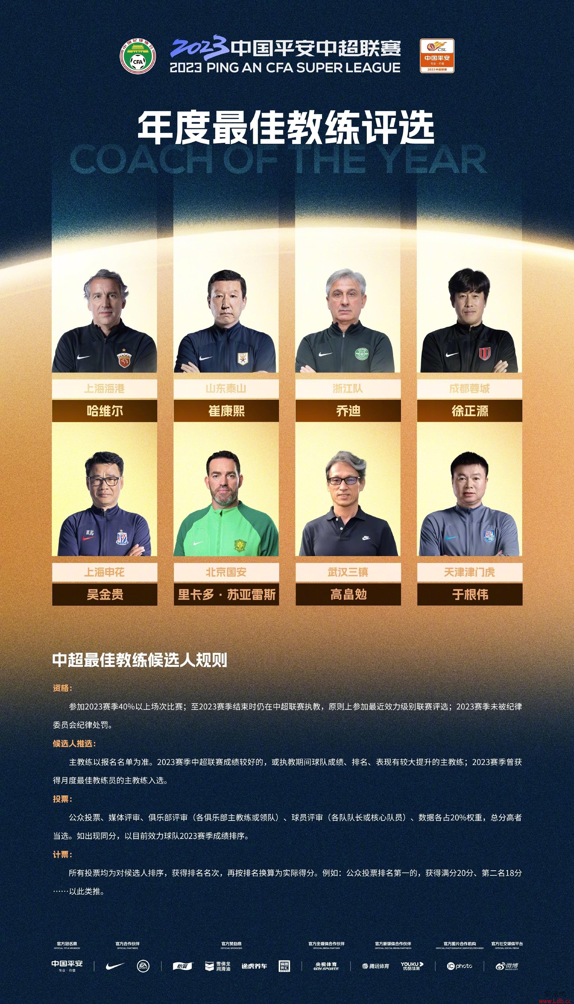 中超年度最佳教练8人候选:崔康熙、哈维尔、徐正源、吴金贵等在列