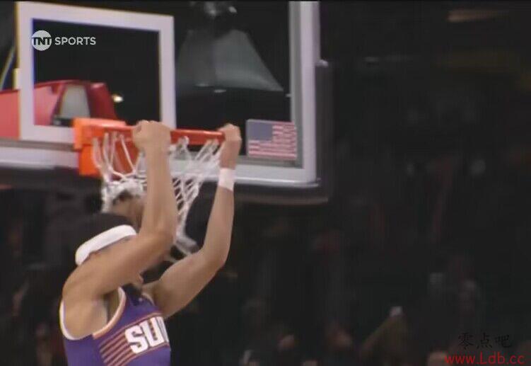 打嗨了??!布克反击瞄了眼篮筐 来了一个背扣!