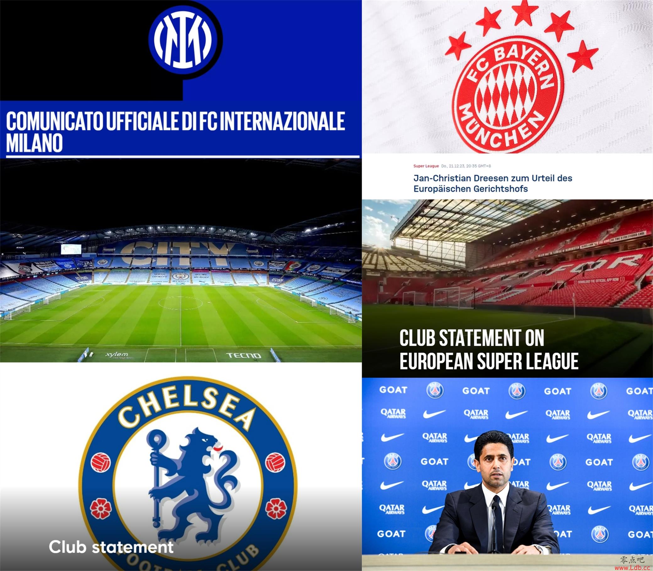 零点吧足球12月22日讯 欧盟法院判决欧足联无权阻止欧超赛事,新的欧超计划也已经出炉。各大俱乐部之后陆续发声明表达立场,支持欧超的仅有计划的发起者皇马与巴萨。盘点如下。