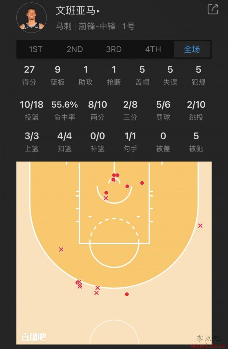马刺状元秀 维克托-文班亚马 出战26.2分钟