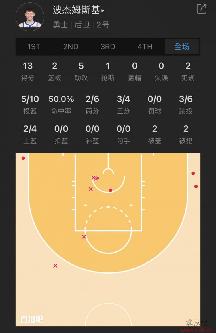 勇士19号秀 布兰丁-波杰姆斯基 出战28.3分钟
