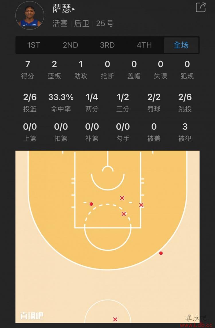 活塞25号秀 马库斯-萨瑟 出战10.6分钟