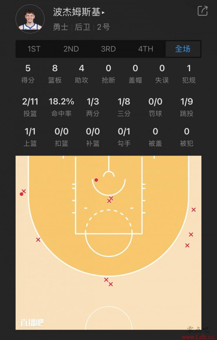勇士19号秀 布兰丁-波杰姆斯基 出战28.6分钟