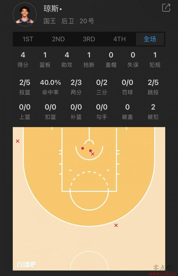 国王34号秀 科尔比-琼斯 出战10.4分钟