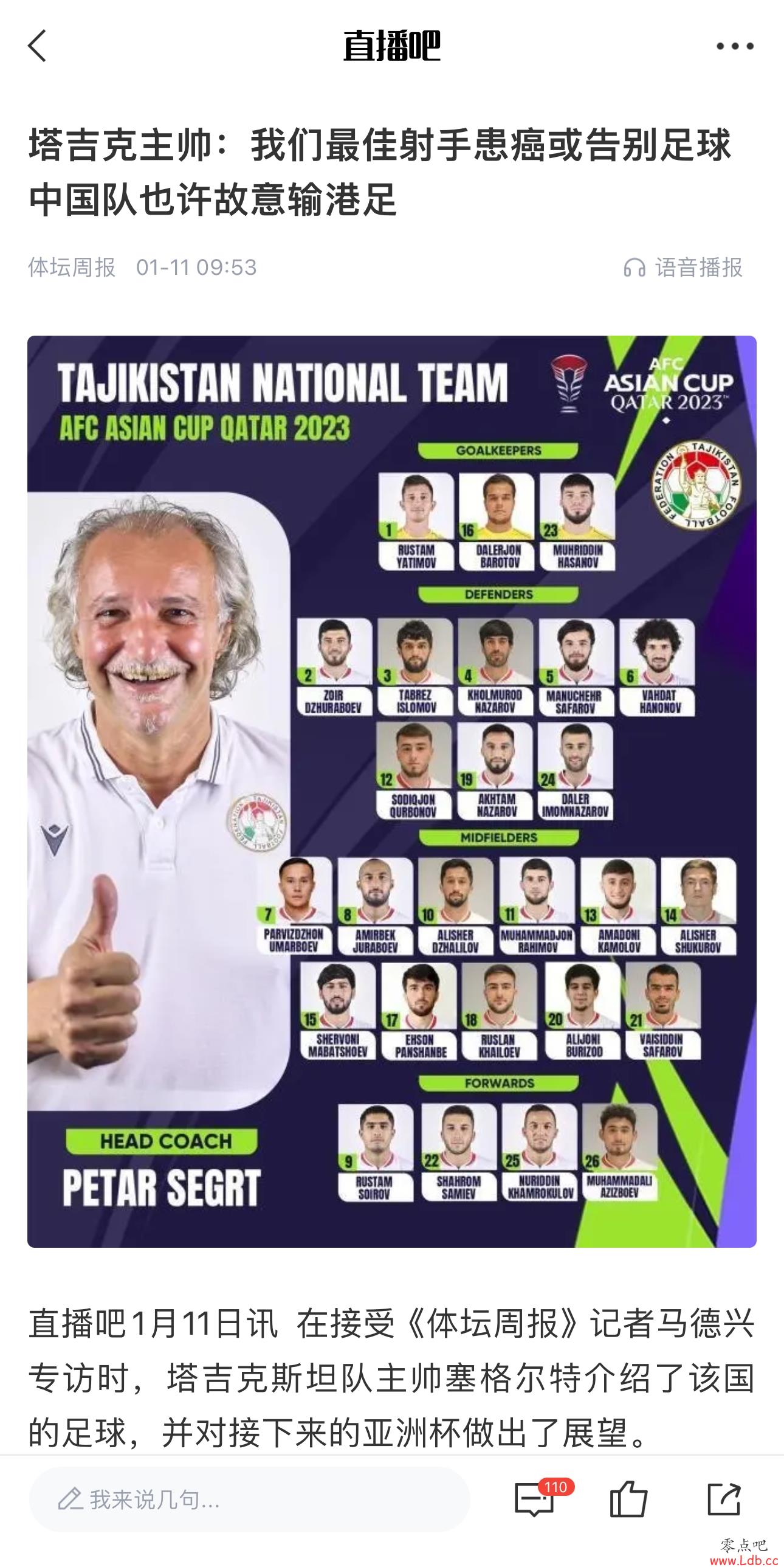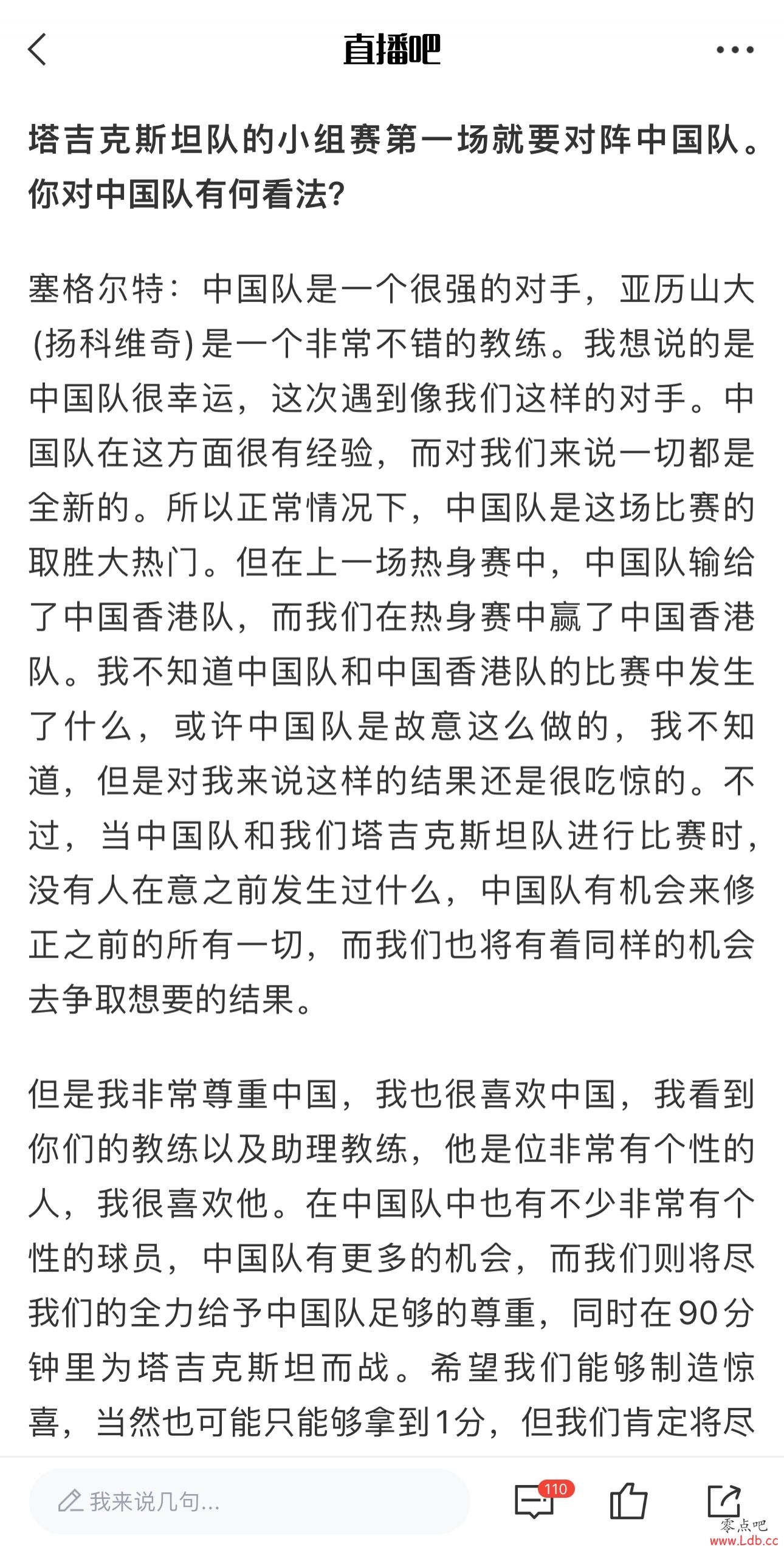 塔吉克主帅认为“中国故意输中国香港”??现在应该知道自己错了
