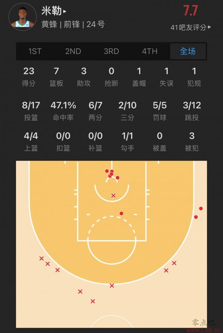 黄蜂榜眼秀 布兰登-米勒 出战34.8分钟