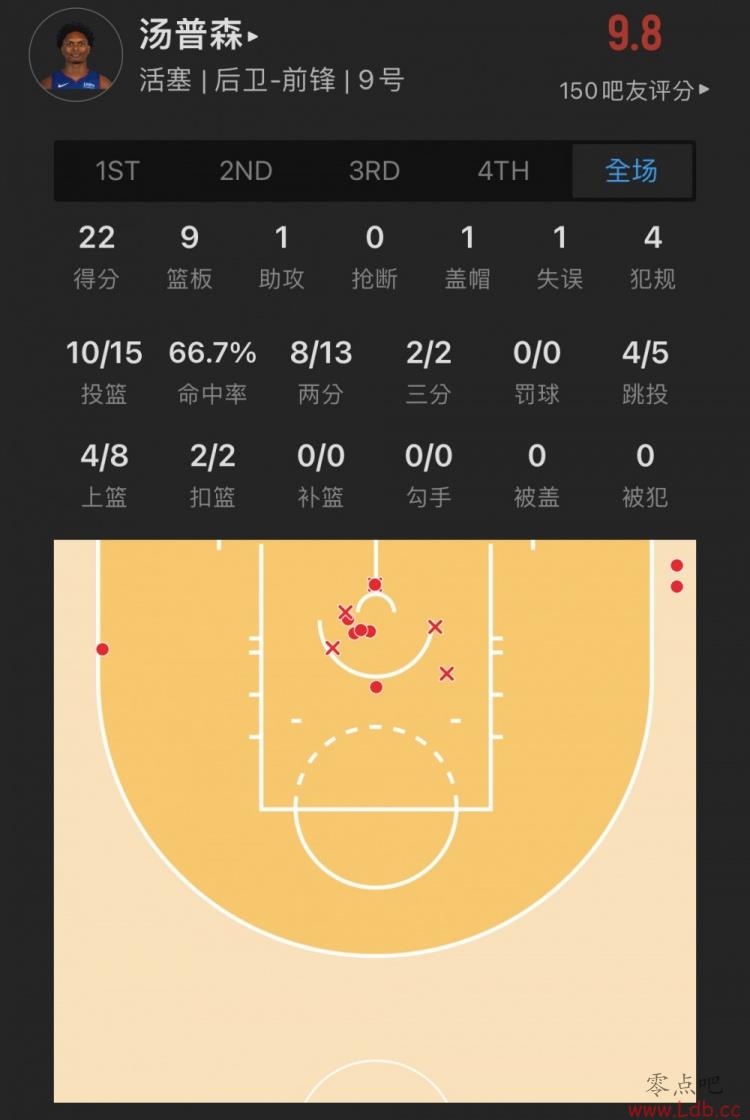 活塞5号秀 奥萨尔-汤普森 出战32.1分钟