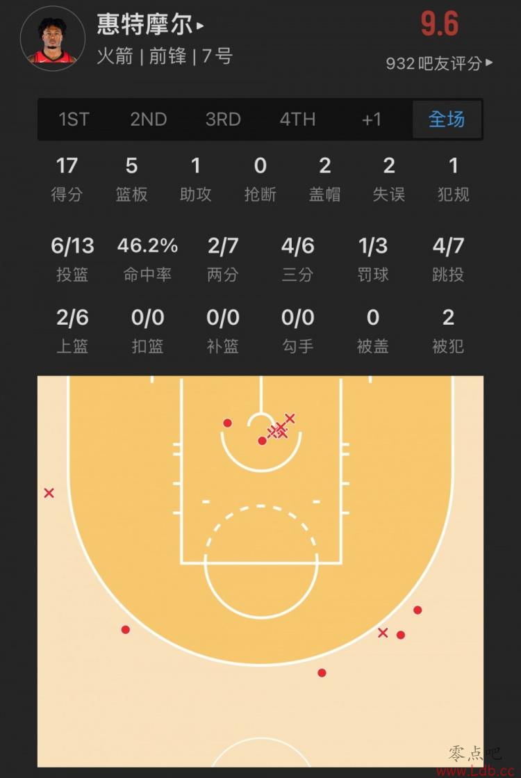 火箭20号秀 卡姆-惠特摩尔 出战26.9分钟