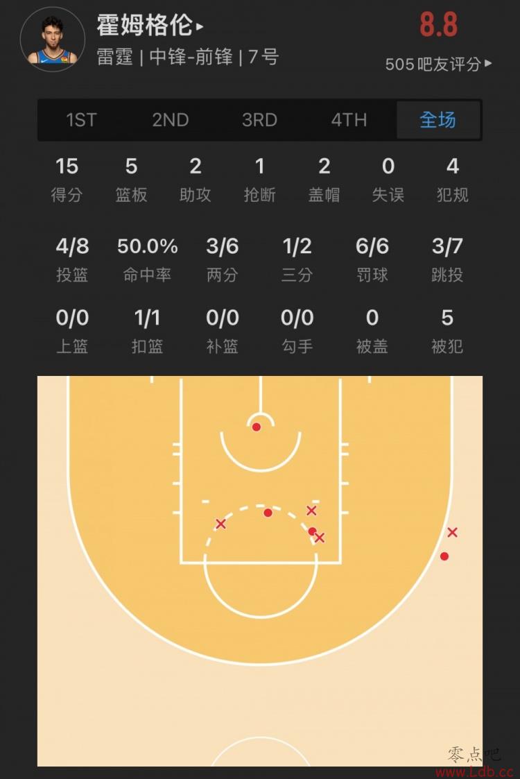 雷霆上届榜眼秀 切特-霍姆格伦 出战33.1分钟