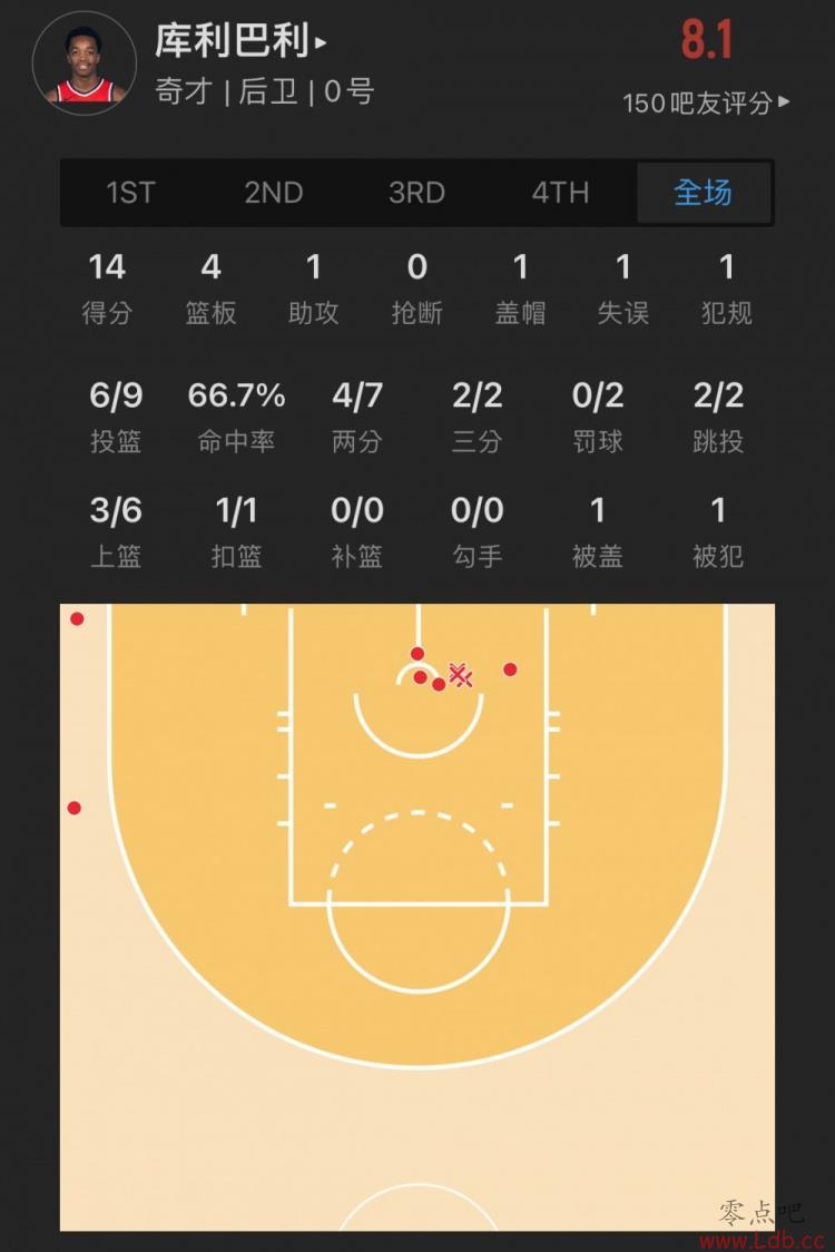 奇才7号秀 比拉尔-库利巴利 出战23.0分钟