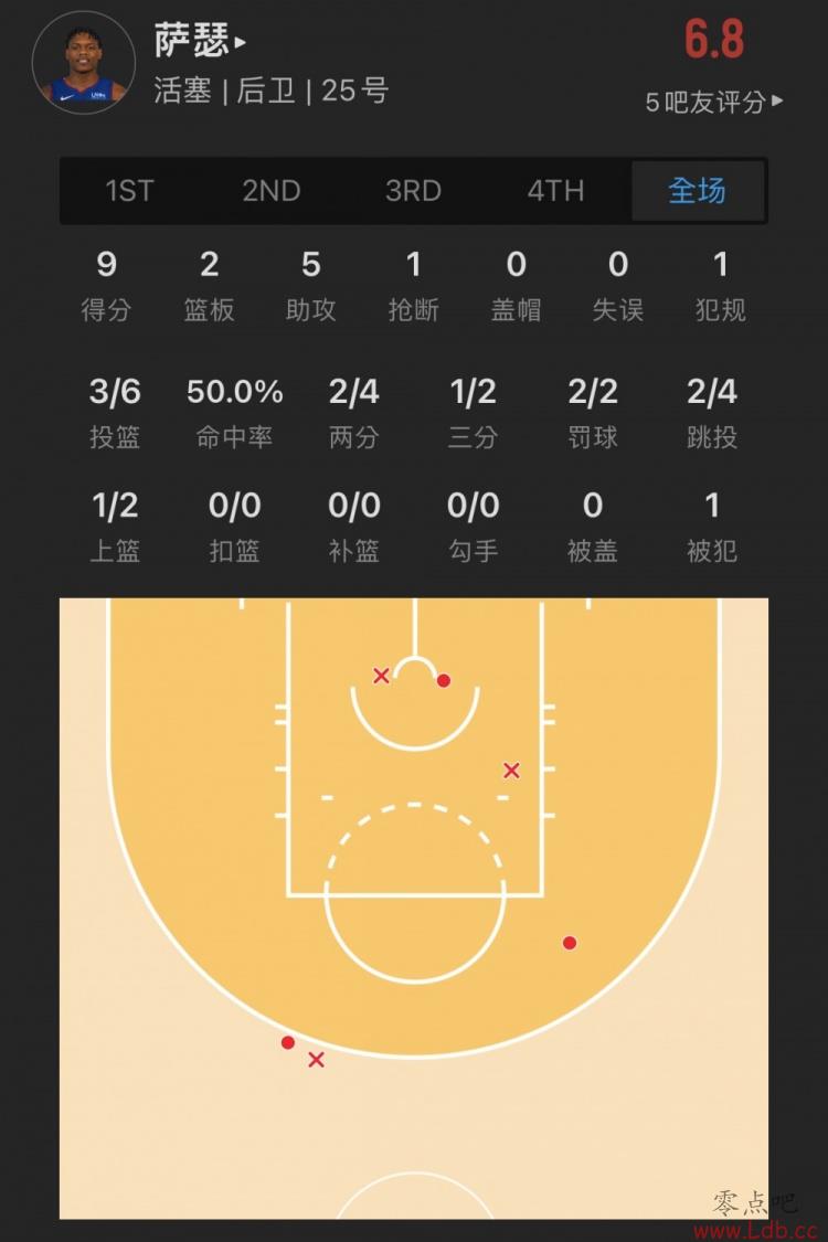 活塞25号秀 马库斯-萨瑟 出战15.7分钟