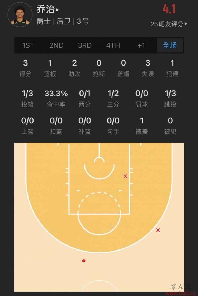 爵士16号秀 基昂特-乔治 出战9.8分钟