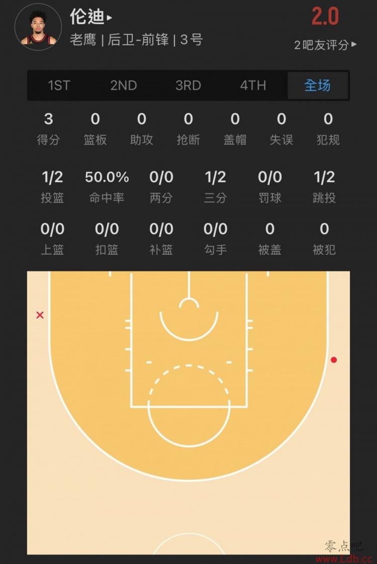 老鹰46号秀 塞思-伦迪 出战3.3分钟