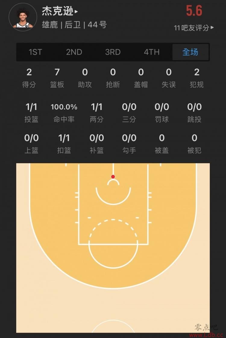 雄鹿36号秀 小安德烈-杰克逊 出战15.4分钟