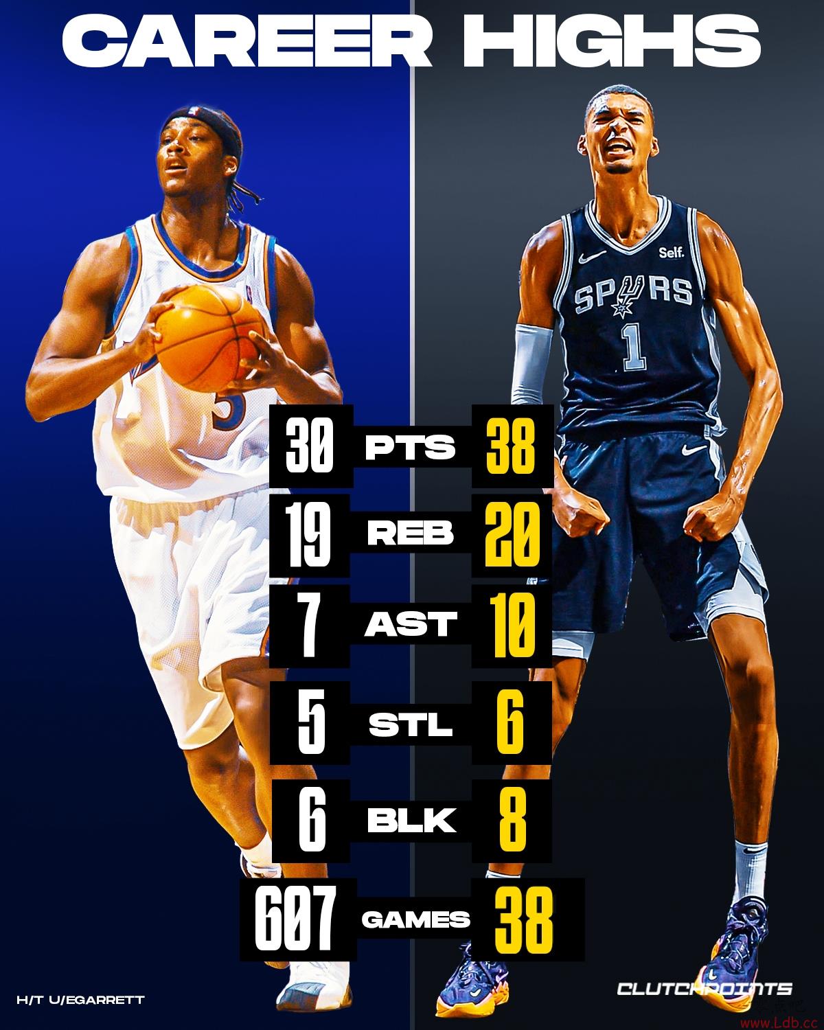 极端对比!文班38场比赛 各项最高已经超过生涯607场的夸梅-布朗