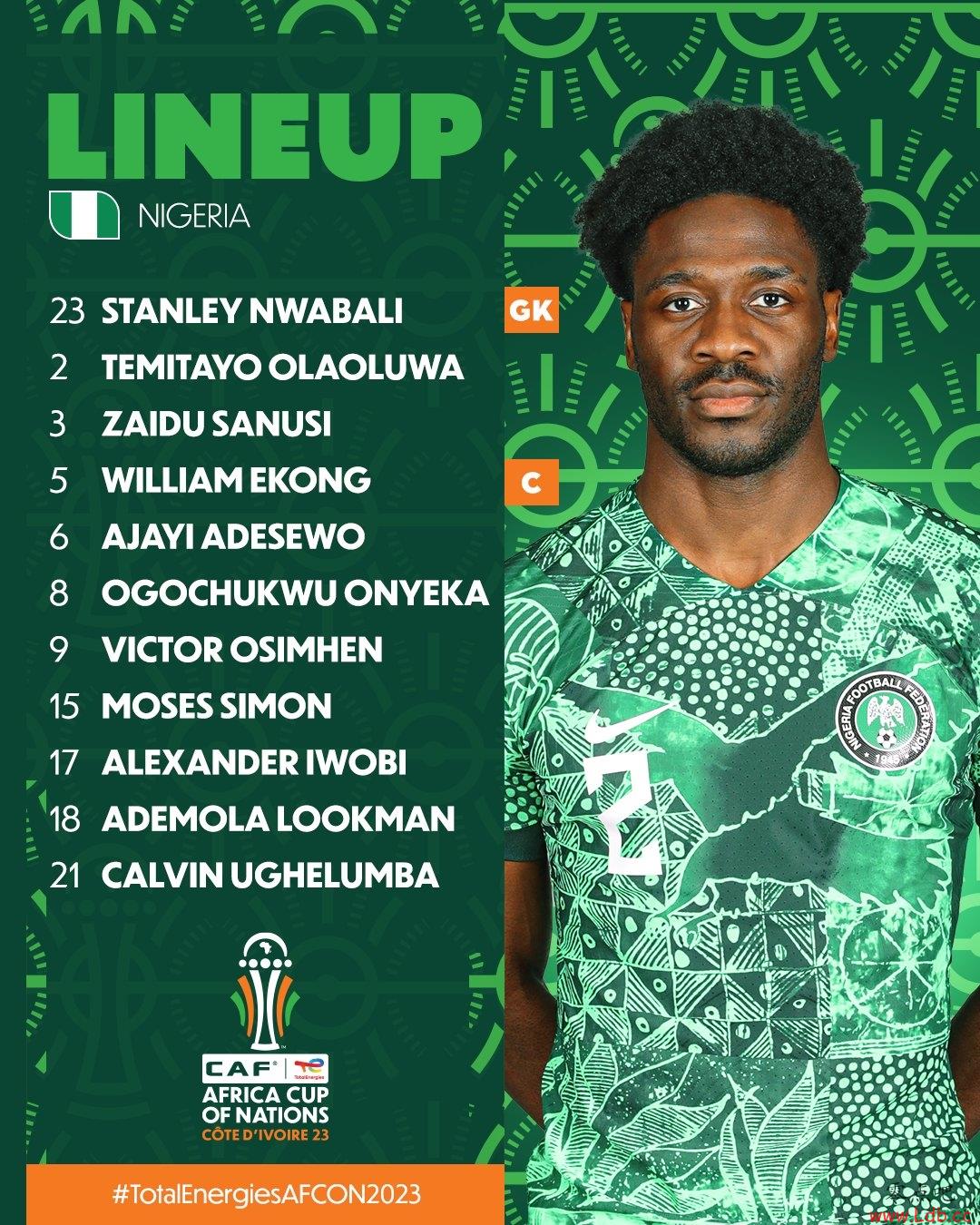 零点吧足球01月28日讯 非洲杯1/16决赛,尼日利亚vs喀麦隆,赛前首发名单公布。奥纳纳连场替补。