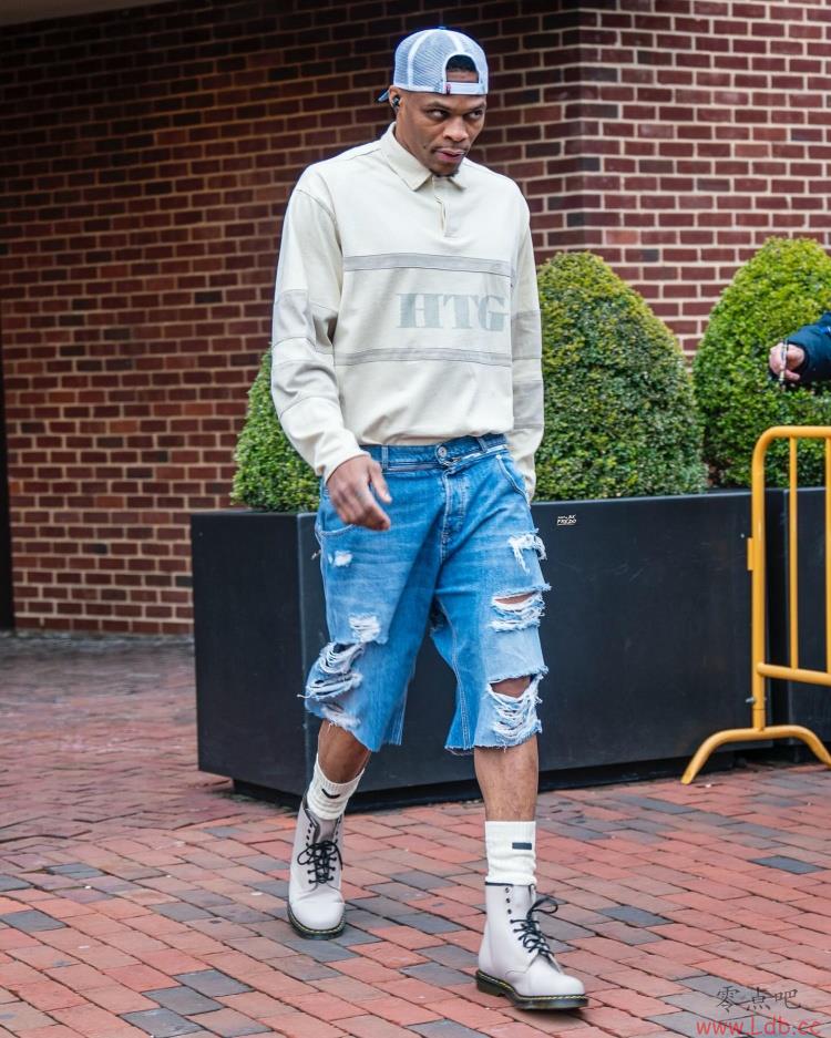 ??威少帽子反戴 破洞牛仔七分裤搭配马丁靴尽显潮男风采!
