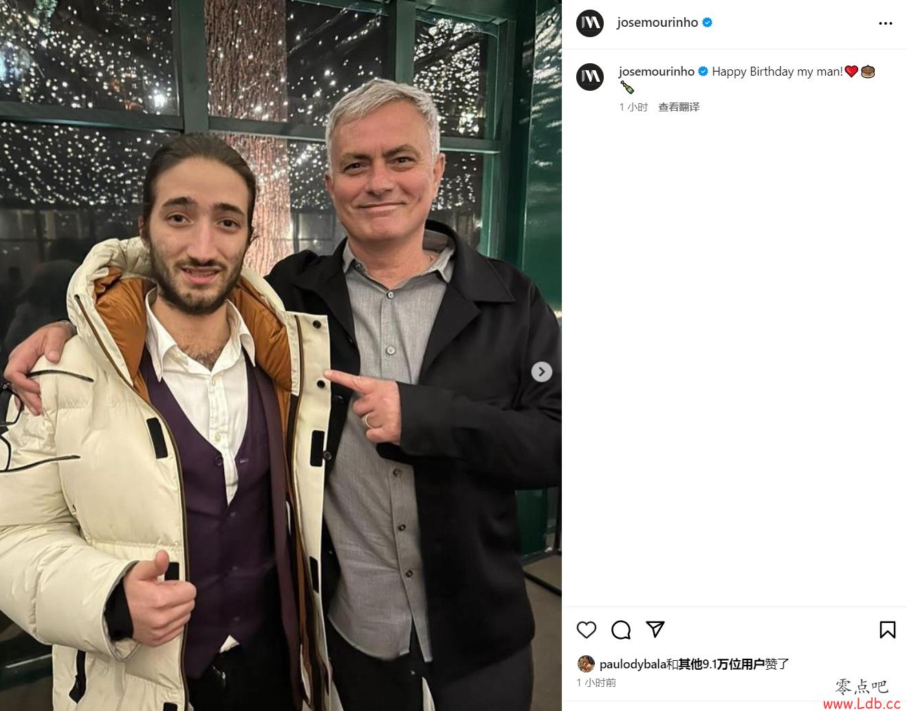 零点吧足球2月2日讯 上个月刚刚从罗马下课的穆里尼奥今日在个人社交媒体上晒照,为儿子小若泽-马里奥-穆里尼奥庆生。