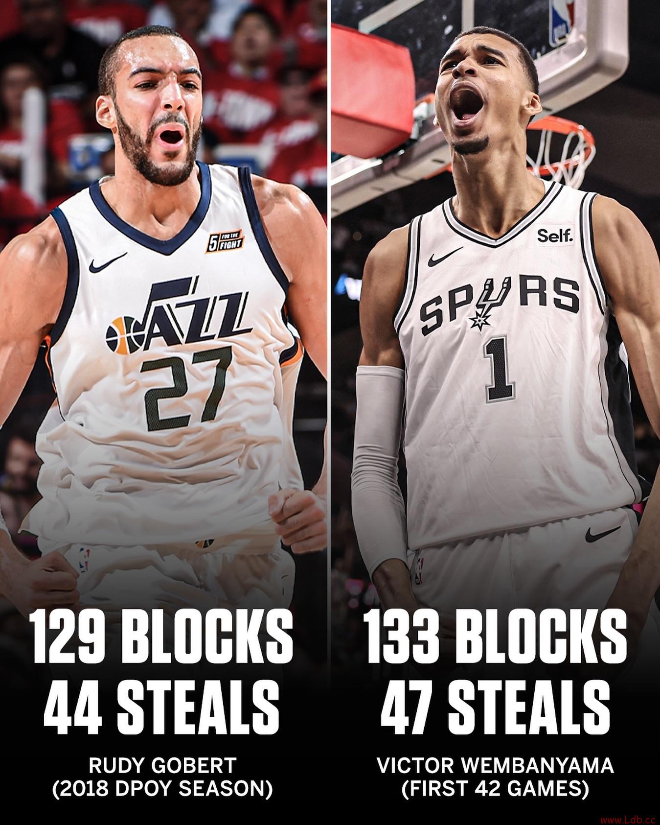 文班目前42场比赛133帽+47断已超戈贝尔2018夺得DPOY赛季防守数据