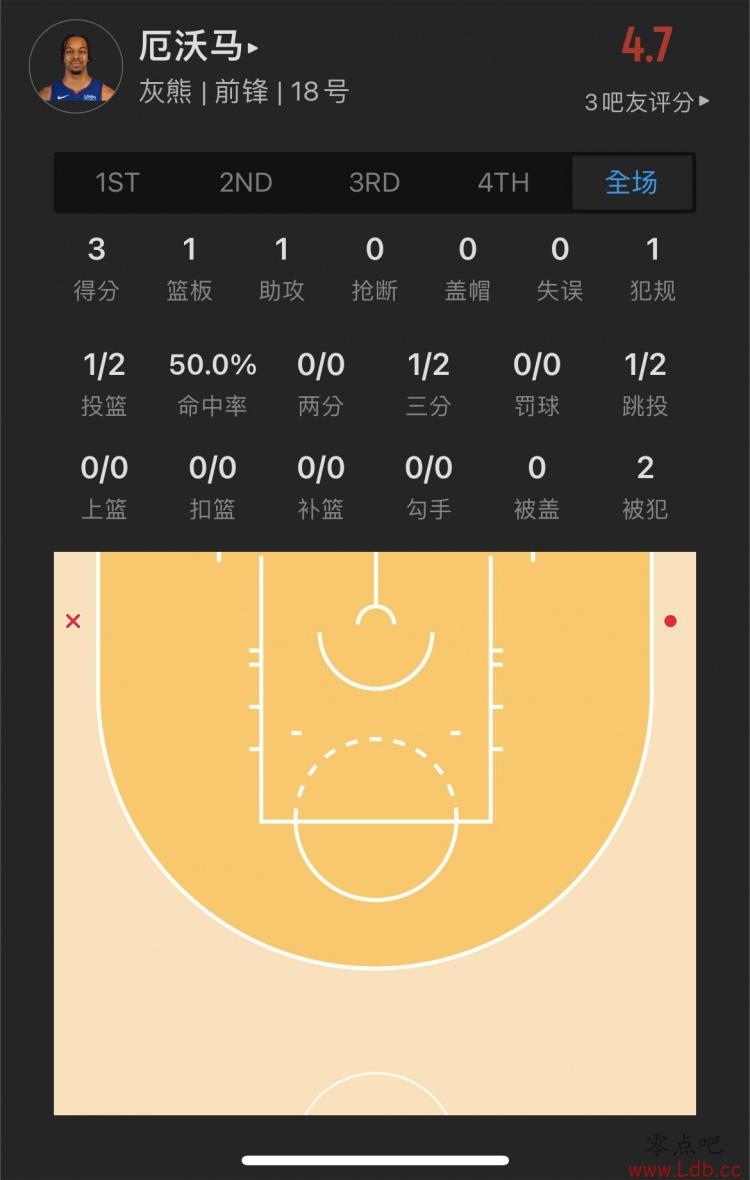 灰熊落选秀 托桑-厄沃马 出战16.4分钟