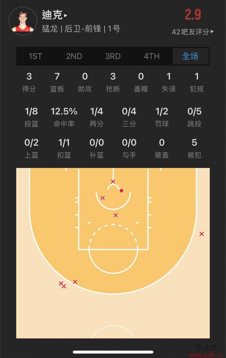 猛龙13号秀 格雷迪-迪克 出战23.8分钟