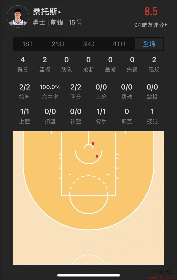 勇士上届55号秀 盖-桑托斯 出战10.8分钟