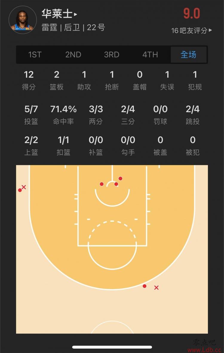 雷霆10号秀 卡森-华莱士 出战24.8分钟