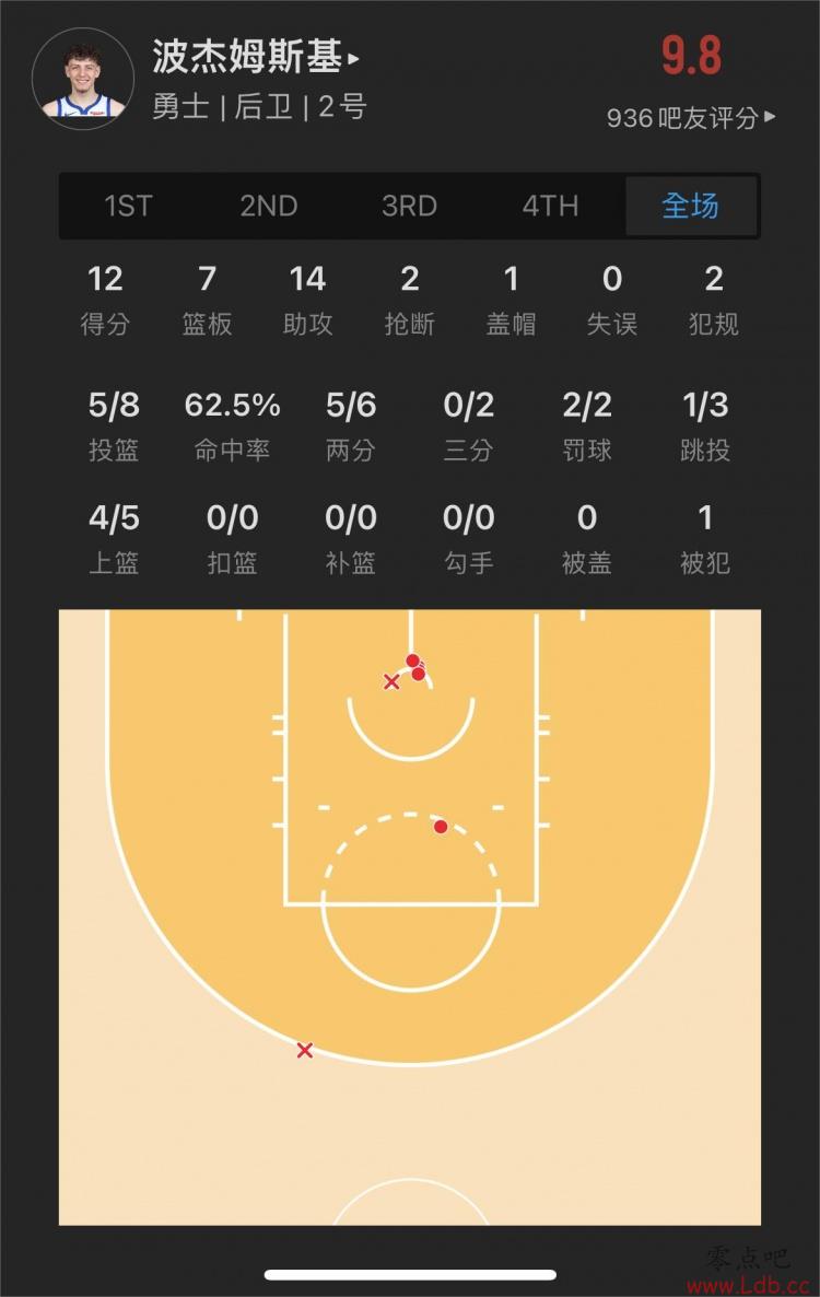 勇士19号秀 布兰丁-波杰姆斯基 出战34.1分钟