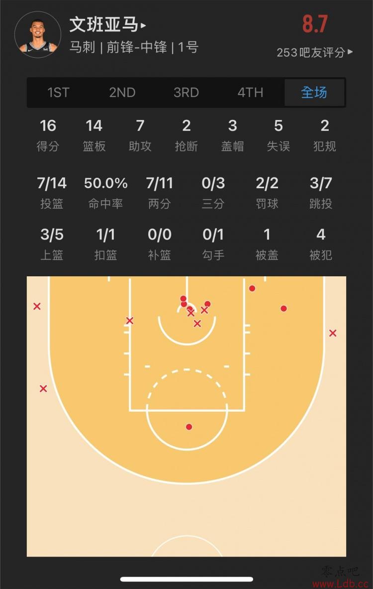 马刺状元秀 维克托-文班亚马 出战28.4分钟