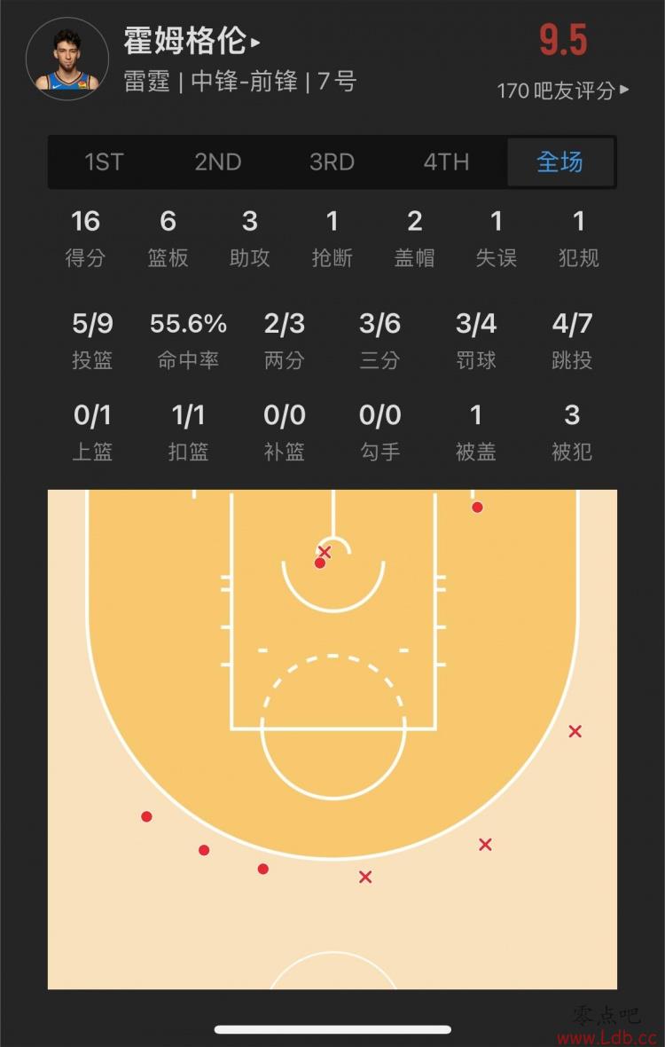 雷霆上届榜眼秀 切特-霍姆格伦 出战23.3分钟